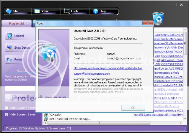 Uninstall Gold 2.0.2.81 là phần mềm chuyên dụng để gỡ bỏ các phần mềm đã cài đặt trên máy tính. Trong quá trình gỡ bỏ sẽ bao gồm cả quá trình quét các khóa registry , các tệp tin còn sót lại . Sử dụng phần mềm này sẽ giúp cho quá trình gỡ bỏ được thuận tiện và máy tính rất sạch sau khi gỡ phần mềm.